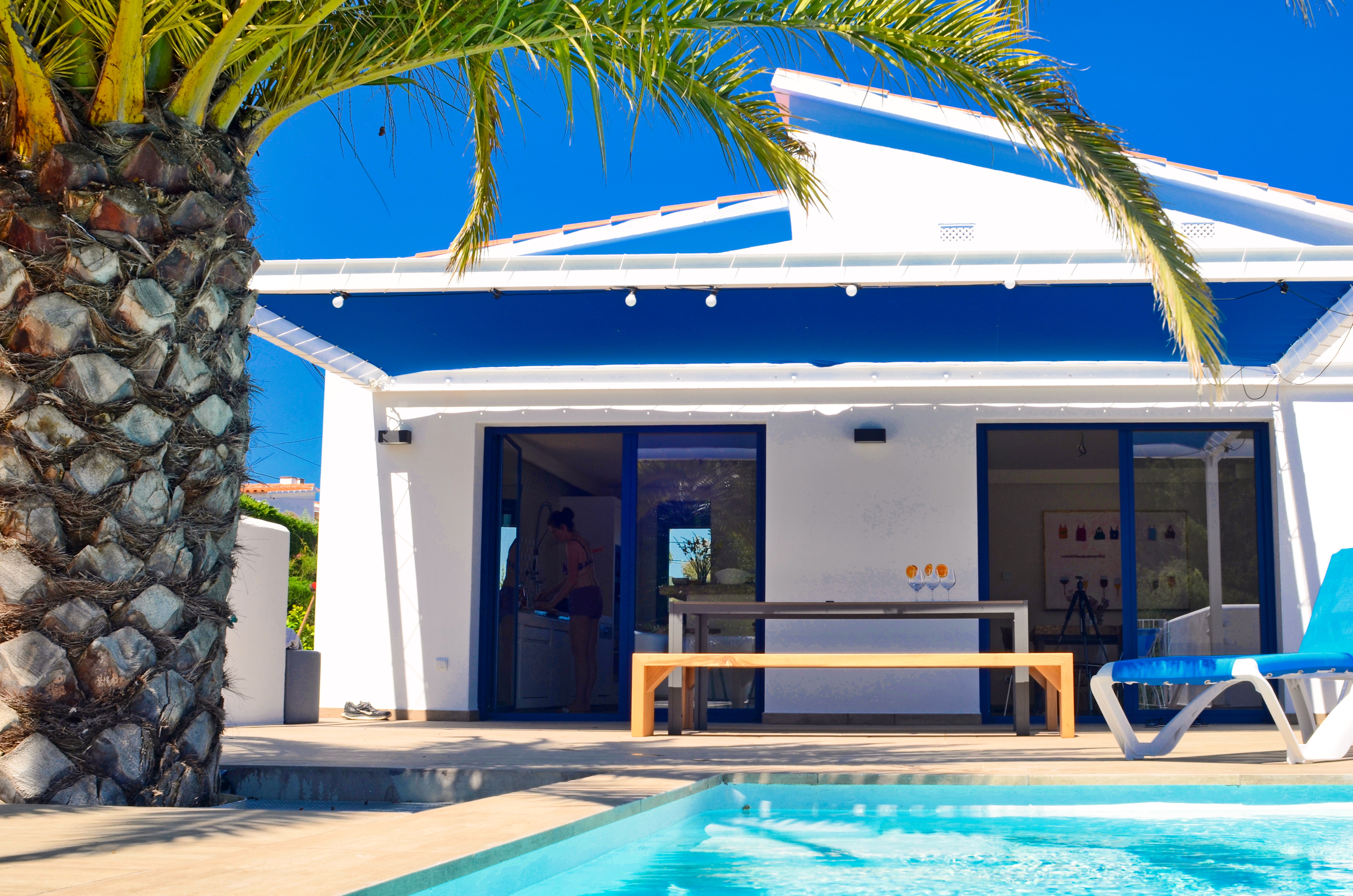 For guest-safety, the villa is equipped with a connected alarm and a grid of surveillance cameras. For privacy, the cameras are switched off when guests are in site and the alarm is disarmed. In armed mode, all your belongings at the villa are under supervision. For entertainment the house is equipped with a Bluetooth sound system and a premium spotify account. The TV features an extensive entertainment center with hundreds of international channels and movies. For weather forecasts, news or trivia, you can always ask "Alexa" on site to get answers to your questions and to stay in the loop.
