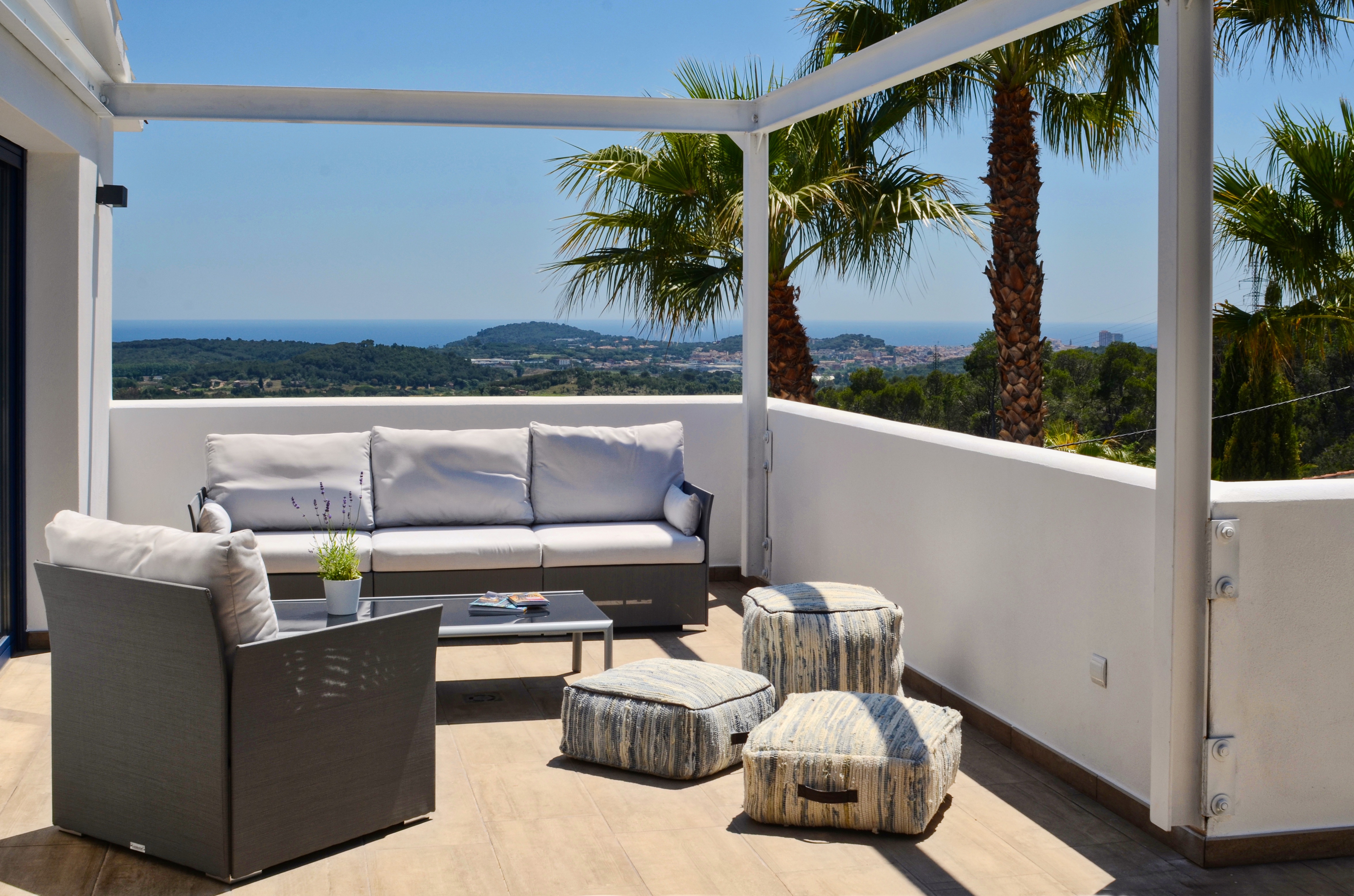 Two large terraces with outdoor furniture